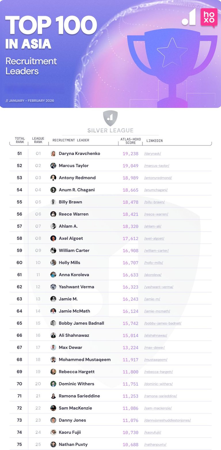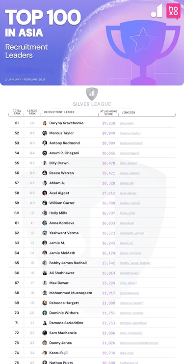 We are proud to share that our Founder & CEO, Yashwant Verma, has been ranked #62 among the Top 100 Recruitment Leaders in Asia by Atlas & Hoxo in January 2026.